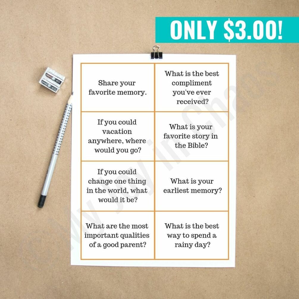 Put the electronics away and build up the relationships in your own home. These printable cards offer a way to kickstart the conversation around the dinner table, in the car, or whenever!